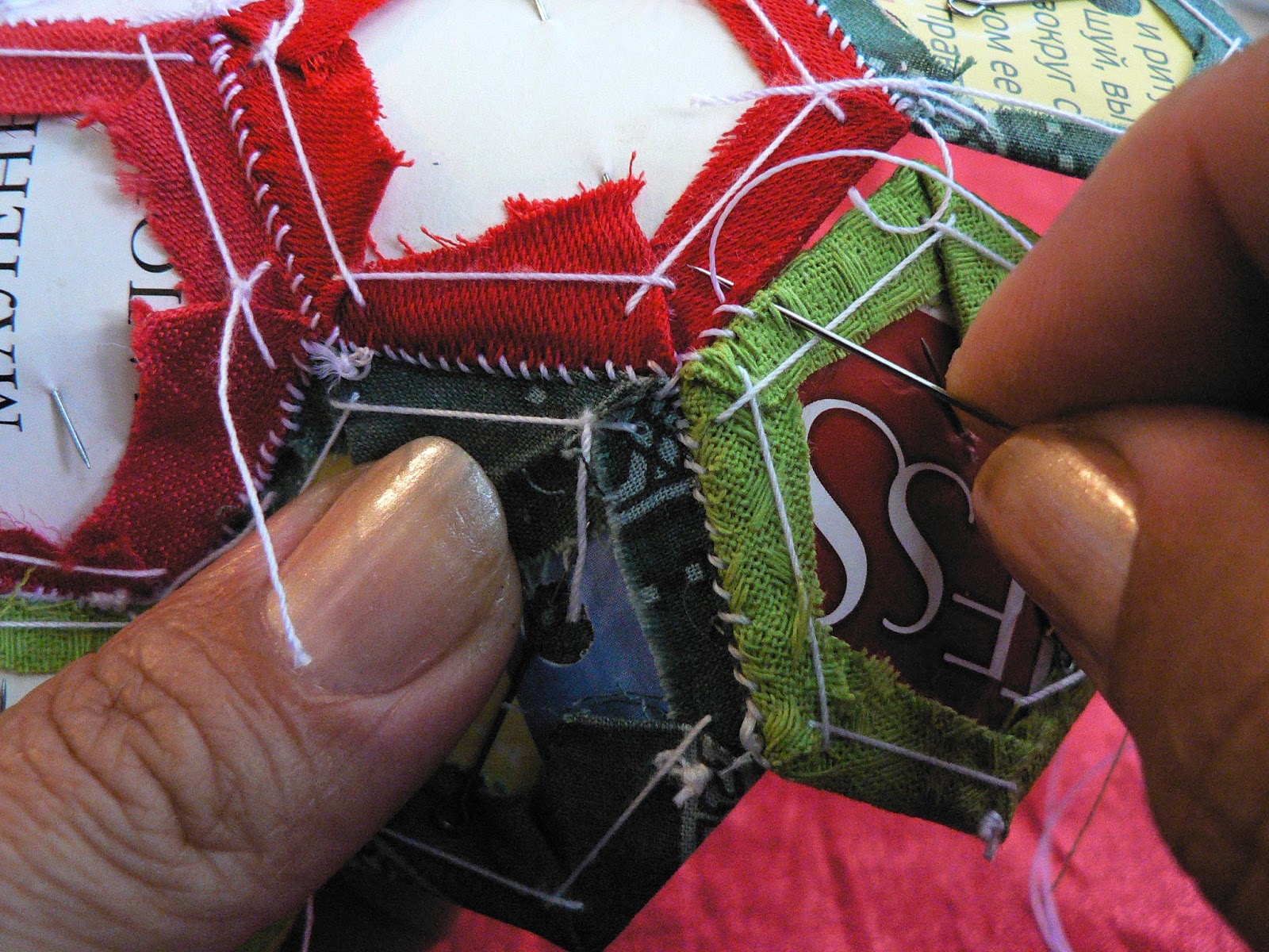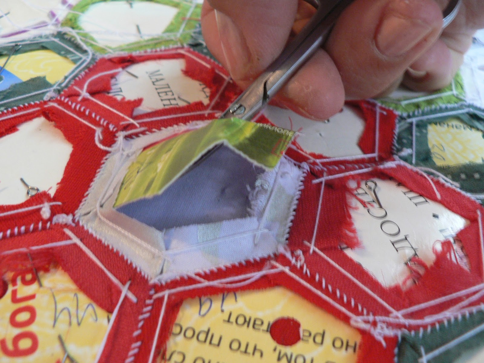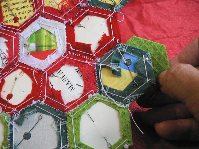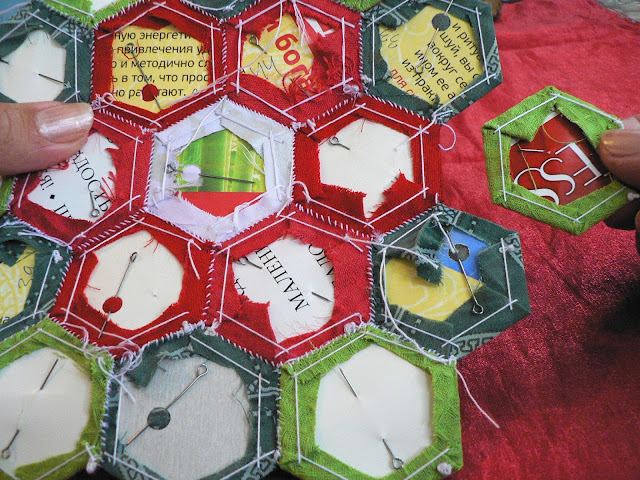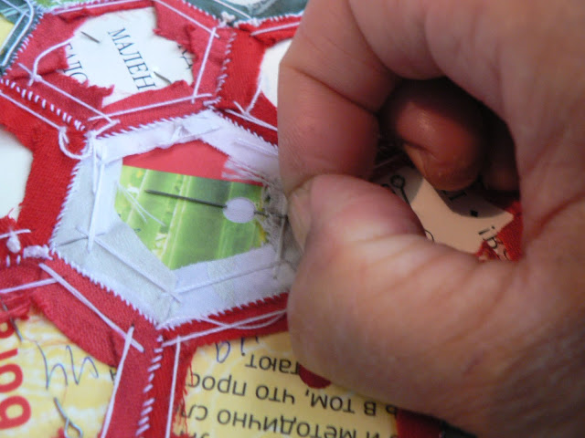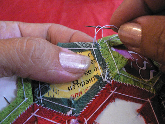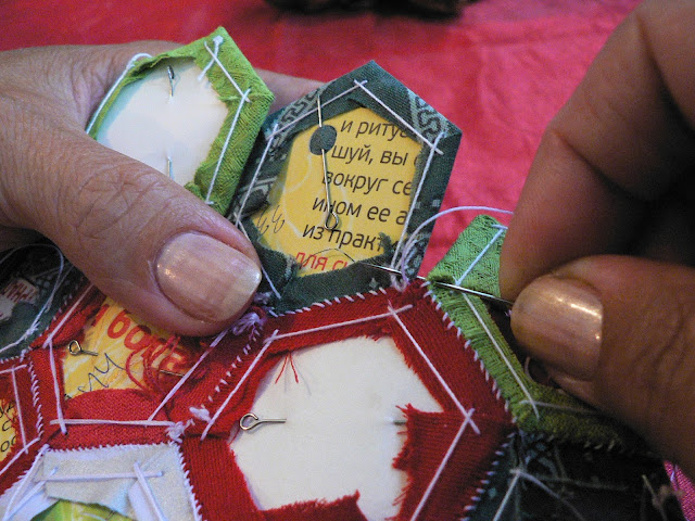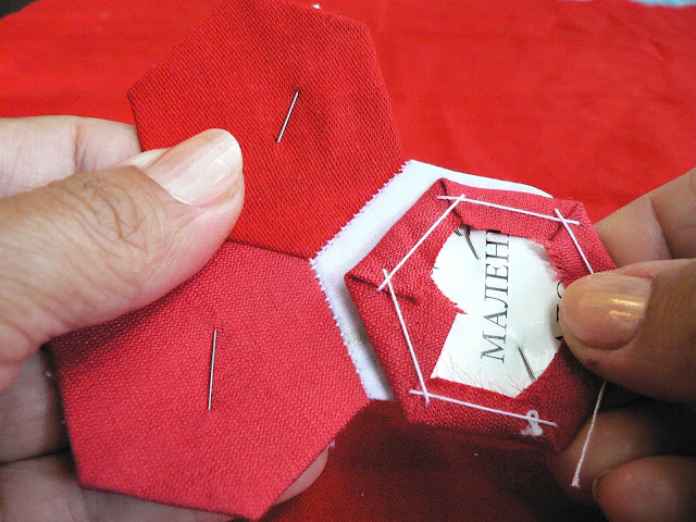 УдалитьСпасибо большое за подробный и наглядный мастер-класс, идея с дырочкой в шаблоне - очень пригодилась, варианты сбора тоже, но есть вопросик - такое ощущение, что если вынуть бумажные шаблоны, рисунок здорово поведет и перекосит... Пока только сшиваю мотивы - цветы, хотелось бы узнать, когда присоединить к ним подложку, на каком этапе сборки, а ведь некоторые даже приклеивают шаблон к ткани, а как его потом отдирать, а если нет, то как стирать? А сама техника гексагонов и результат приносит огромное удовольствие!!!