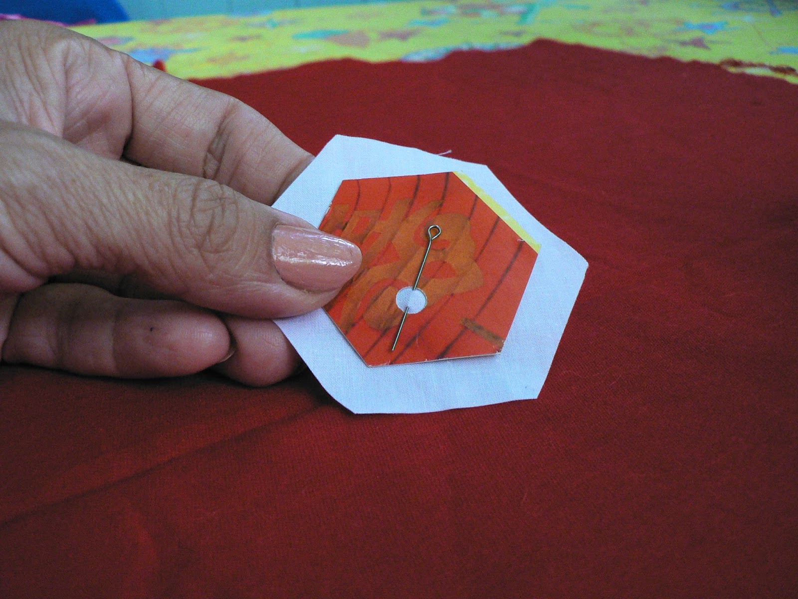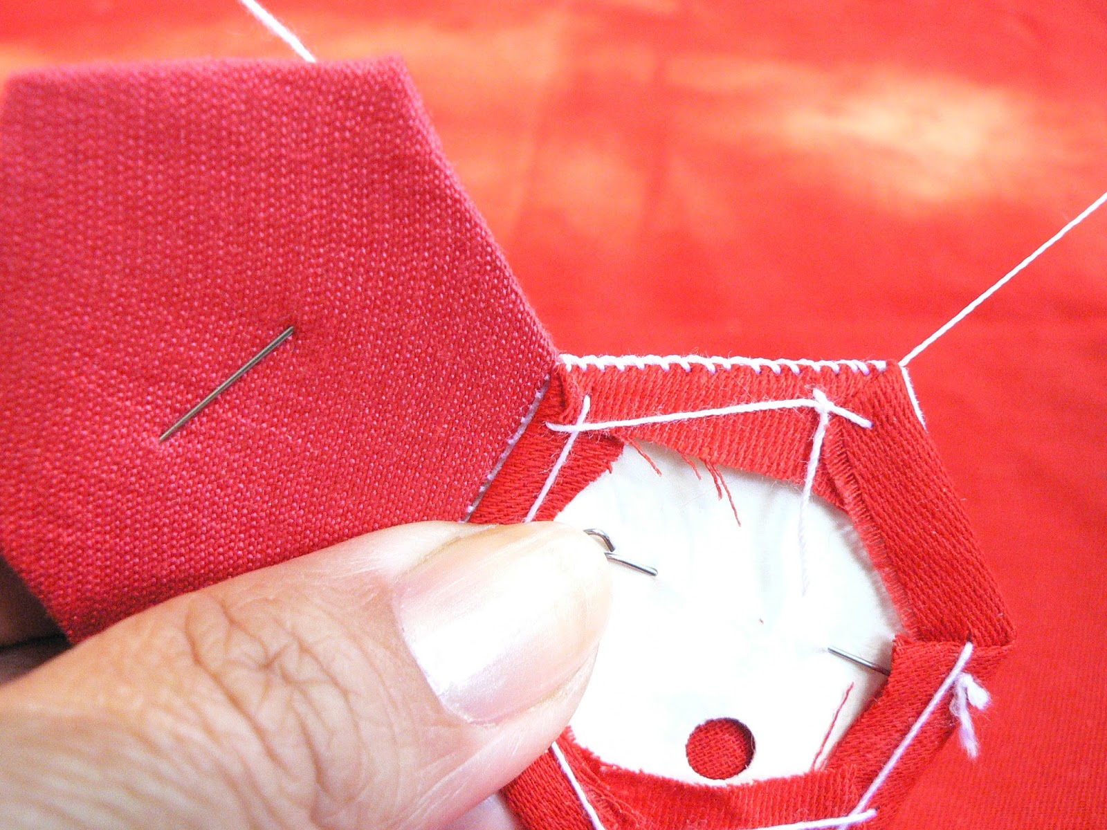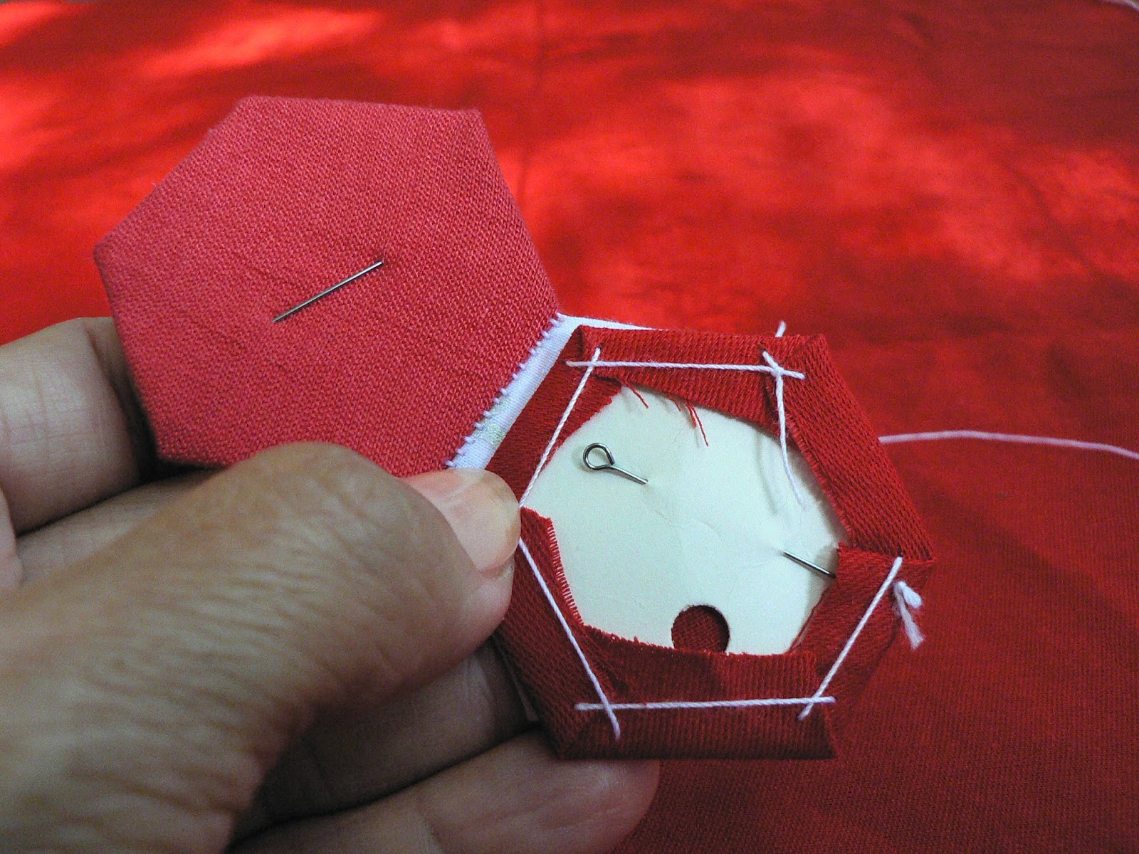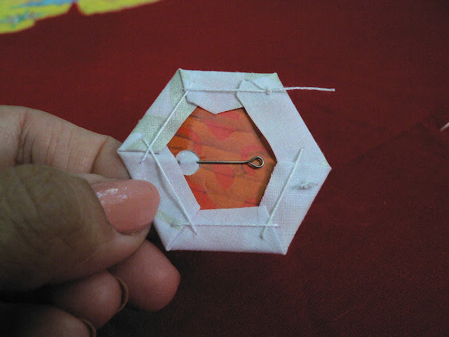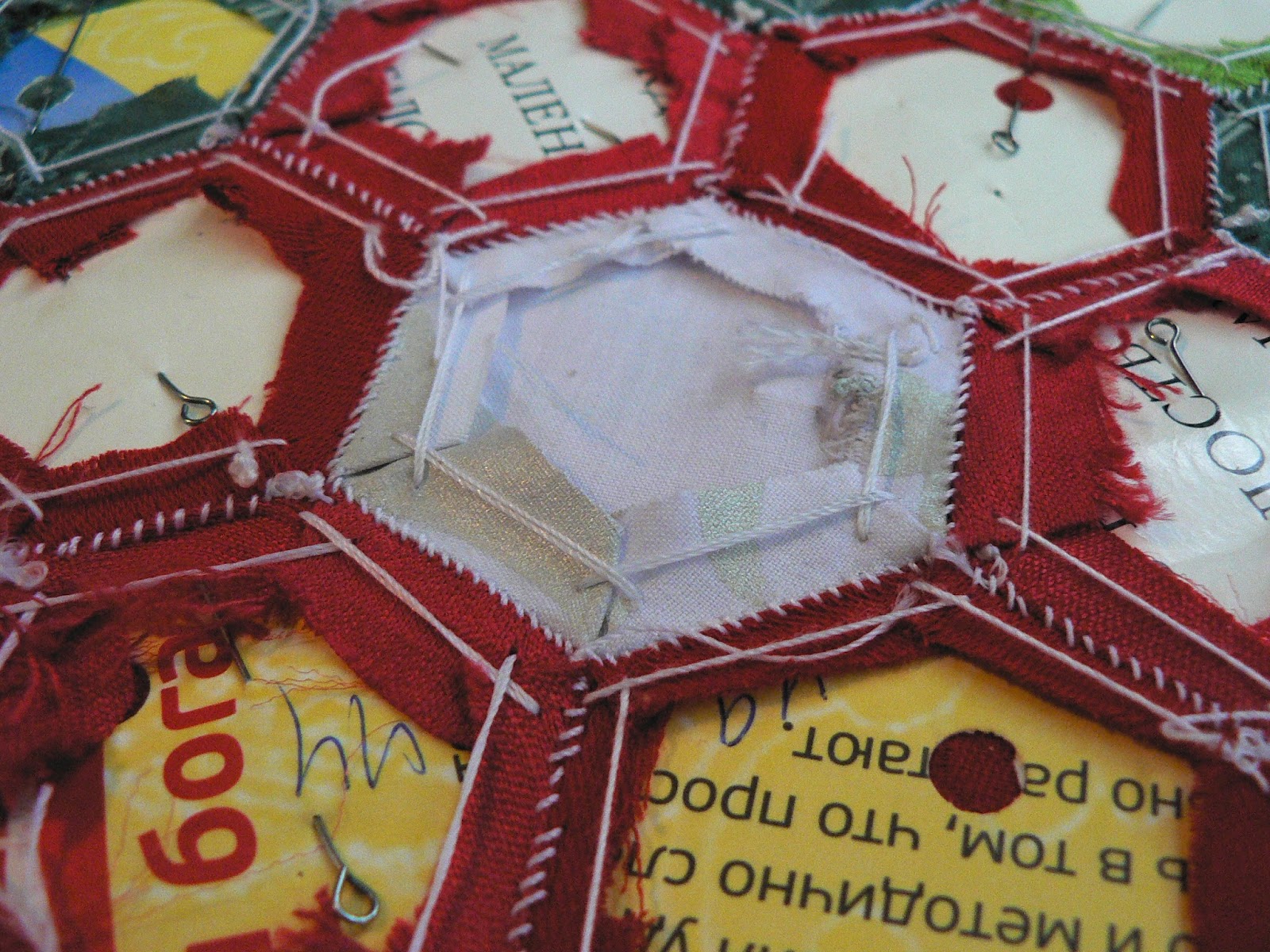 УдалитьСпасибо!!!! С удовольствием прочитала!!! Пригодилось! Тоже сшиваю гексагоны и возник вопрос "когда вынимать шаблоны. Но у меня шаблоны без дырочек, и я к шаблону из приметываю очень тонкой иглой.