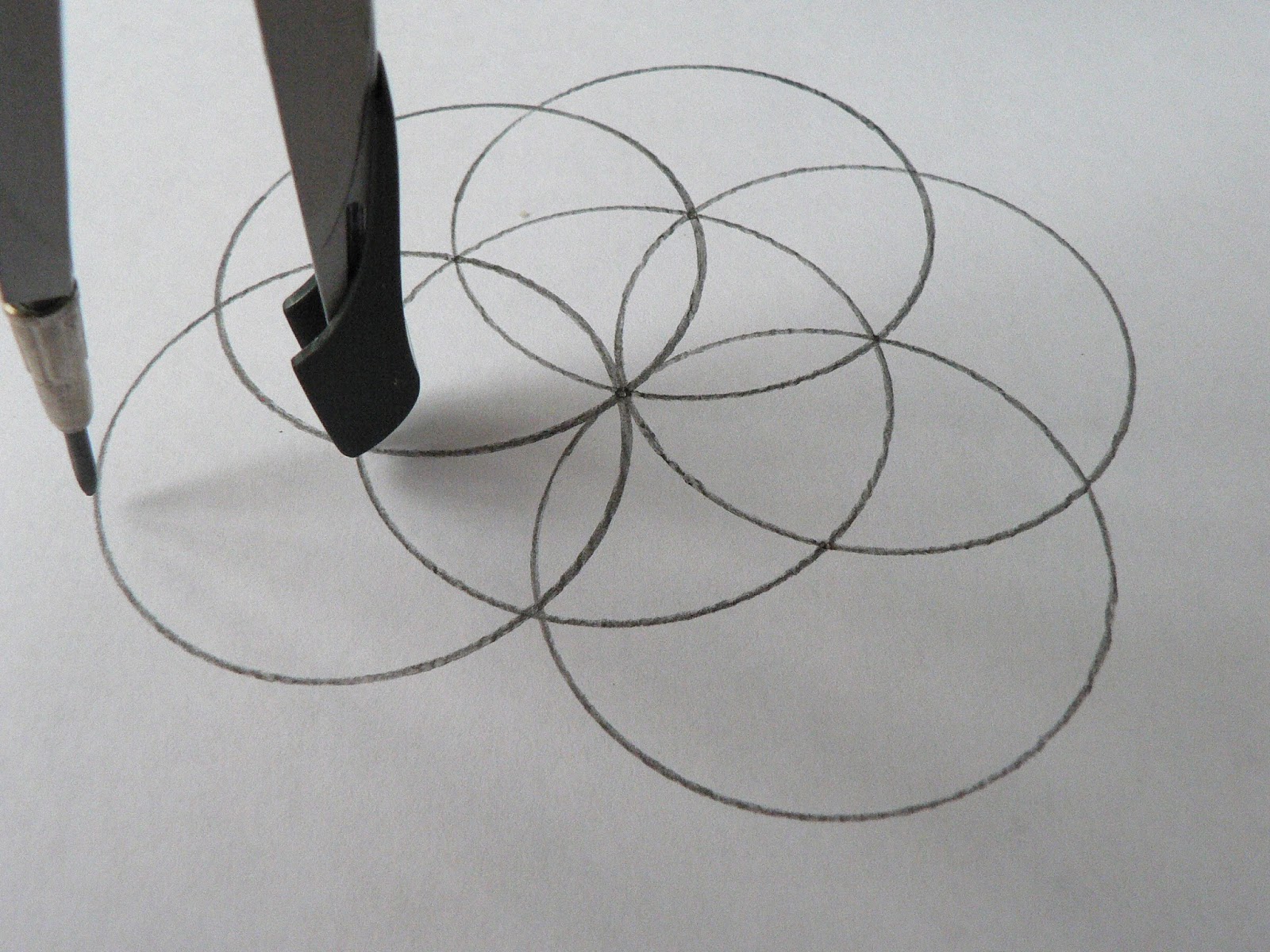 В следующую точку пересечения ставим циркуль и строим ещё одну окружность.